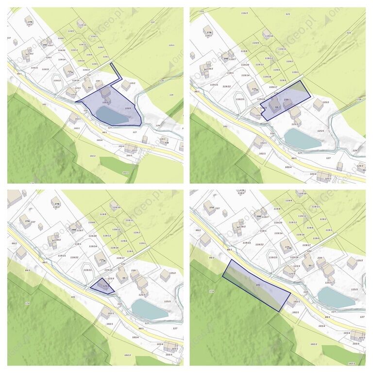 125/5, 125/4, 123/3, 239 oraz 101. Główna działka 125/5 o