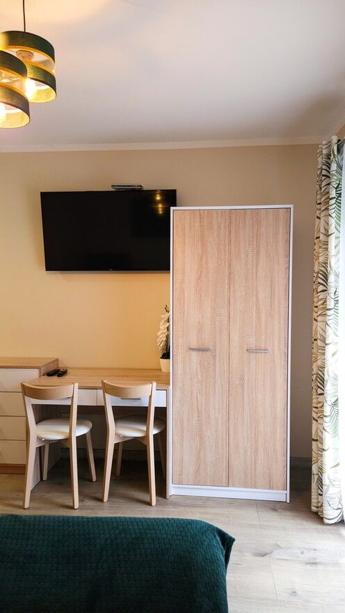 Pokoje utrzymane są w średnim standardzie, funkcjonalne i gotowe do